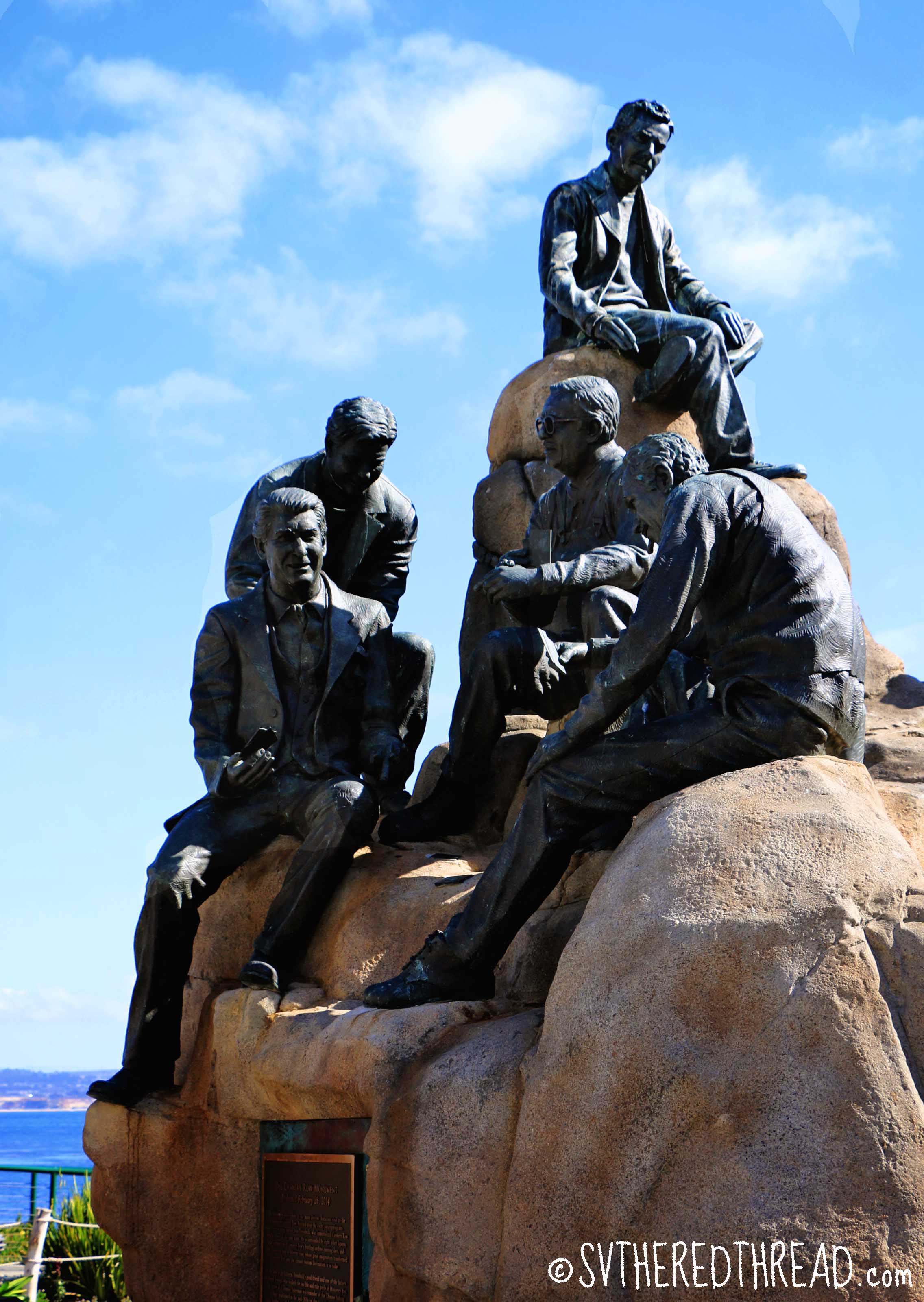 The waterfront beach walk and side streets of Cannery Row were a different story, however. It is well-worth exploring and should not be missed! The beach front park between Fisherman’s Wharf and Cannery Row offered beautiful ocean vistas. Numerous placards offered information about wildlife and history that enriched our visit to an area that might otherwise seem kitschy given its hordes of semi-tacky gift shops. Several statues and monuments also offered glimpses at the characters and cultures that were associated with Monterey when it was at its prime as a sardine canning mecca. The Cannery Row Monument, which was dedicated earlier this year, is a most beautiful tribute to the town’s colorful past and to Steinbeck, whose stories immortalized it. Fitting that Neil started (and finished) Travels with Charlie (thanks, Wilson) while we were in town.