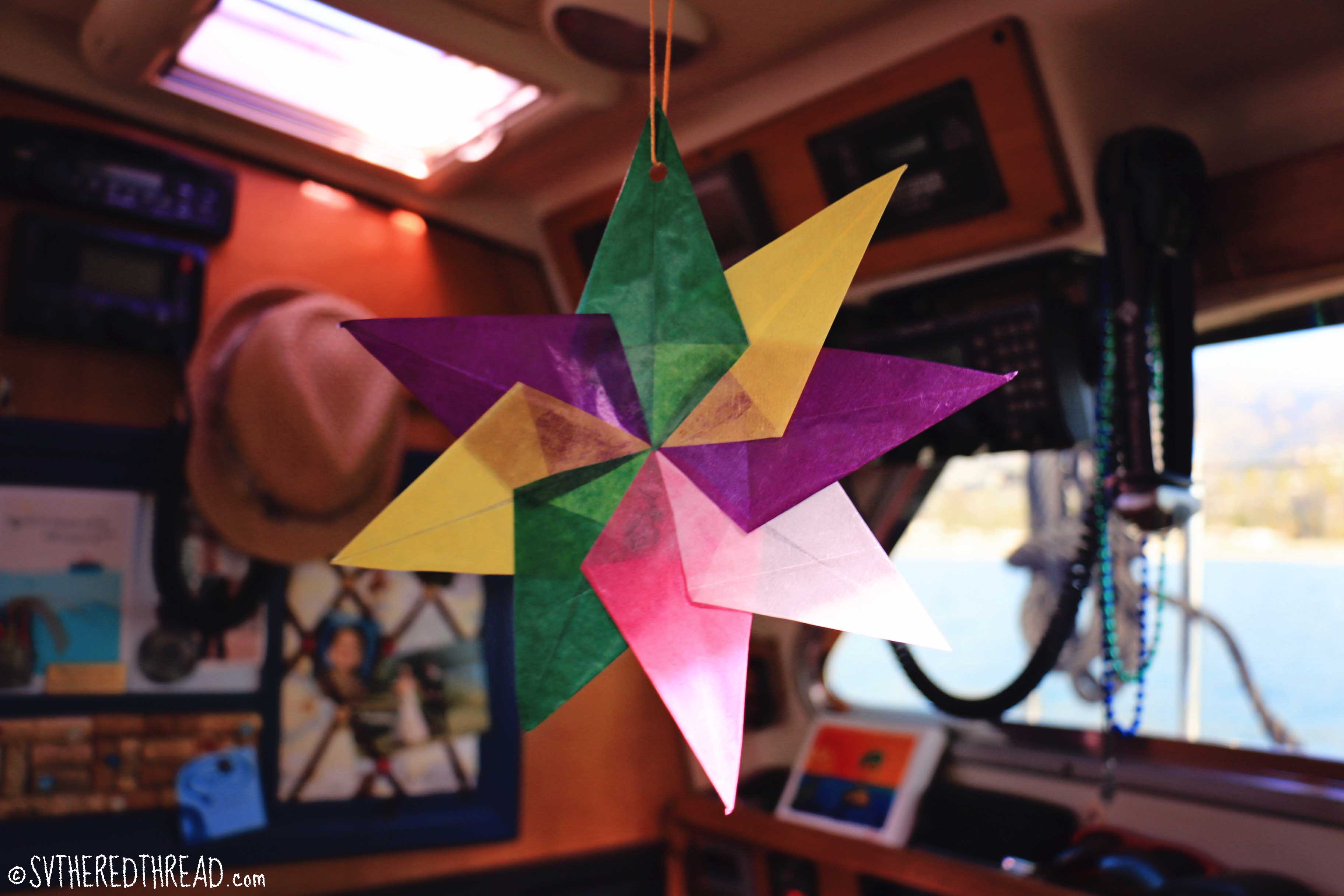 #Santa Barbara_PalmsWe weighed anchor and departed Santa Barbara on a breezy, blue-sky morning. It felt surreal to be back underway after our heart-wrenching trip home to Seattle. When we arrived back at The Red Thread two evenings earlier, we were greeted by a silly “Welcome Home” poster and colorful, homemade stars dangling from our ceiling, all of which had been crafted by 13-year-old Journey from s/v Namaste! We were thankful for our cruising buddies’ support and appreciative that they had been willing to look over the boat in our absence. S/v Namaste had continued south a week earlier, and we looked forward to our paths crossing again somewhere down the coast!#SB_Welcome home #SB_Welcome home starsNeil described a sense of relief that our voyage was indeed real; that it hadn’t been a dream. We had missed our sailboat home, and we pulled out the sails at the earliest opportunity. After two hours of tacking back and forth before the Santa Barbara waterfront and making no progress toward our destination, however, we fired up the engine. We had roughly 25 miles to go to reach Smugglers’ Cove on Santa Cruz Island and weren’t particularly keen on arriving in a remote anchorage after dark.#Santa Barbara Channel_Oil rigsIn the distance, we could see the lumbering outlines of behemoth oil rigs. Their presence along the horizon is jarring, like an army of post-apocalyptic robots marching across the surface of the sea. They reminded Neil of creatures from the “War of the Worlds” science fiction novels. More than a dozen are spread from one end of the Santa Barbara Channel seascape to the other. Some appear to be actively in use, while others appear worn and neglected, as if long ago abandoned. The third largest oil spill in American history occurred here nearly 50 years ago. I find it difficult to not feel disgusted by the sight of these hulking structures. I accept that ours is a world whose technologies necessitate certain types of fuel, but seeing these beasts and being aware of the decades of damage the Santa Barbara oil spill caused the creatures in these waters leaves me feeling cynical. The sight of them makes me appreciate all the more the massive windmill farms that stretch along the desert cliffs between Los Angeles and Palm Springs.