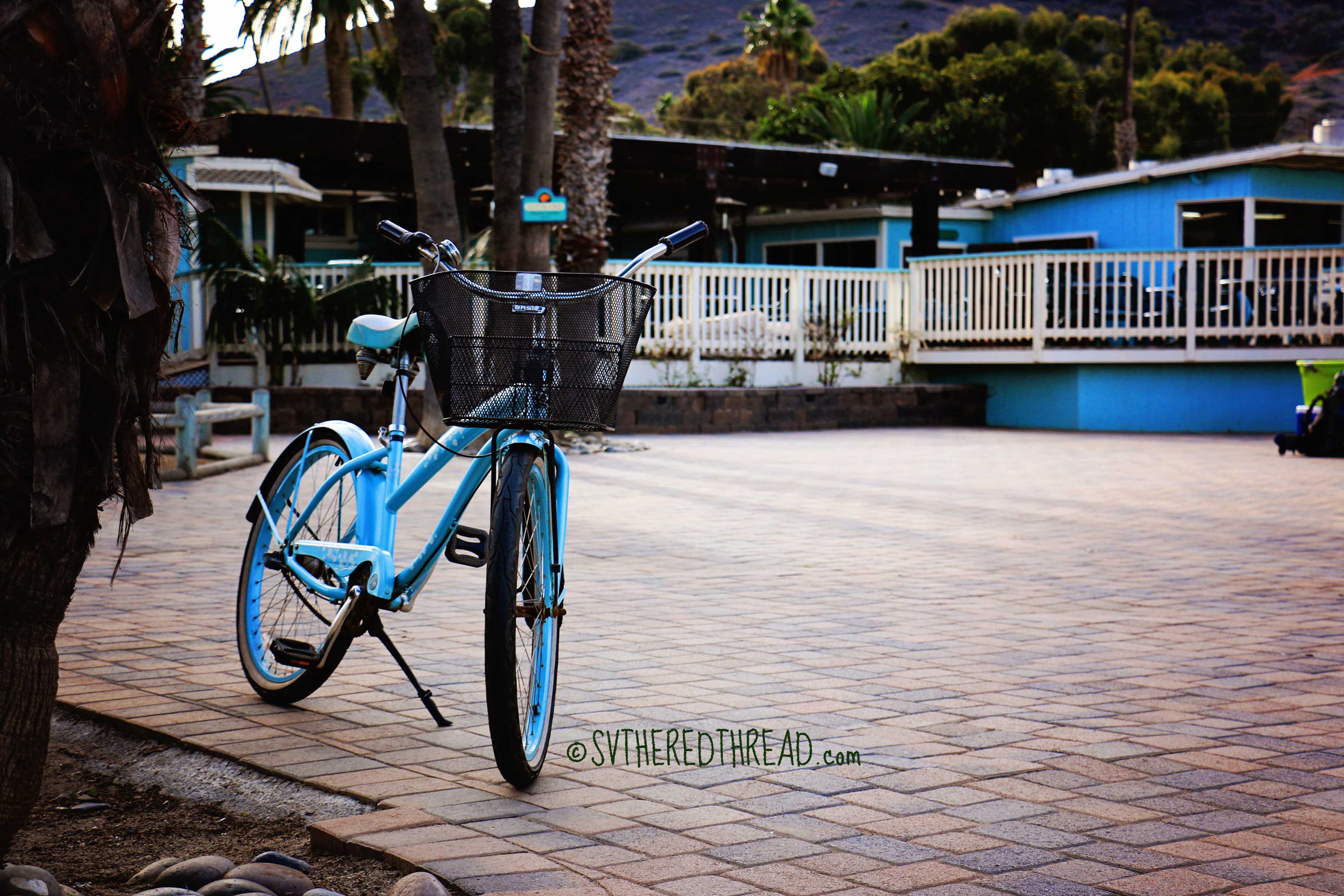The pebble beaches along Isthmus Cove were beautiful, and I could’ve spent hours sitting on the shore studying tiny, colorful shell remnants. The town was sleepy but charming, and we spent the afternoon poking around in the scuba shop and the general store (the only shops in town), and walking some of the paths along the water’s edge. We arrived back at The Red Thread with just enough time before sunset to untangle her anchor chain from a cluster of lobster pots that had unfortunately wound around it, to weigh our hook, and to reset (for the third time in less than 24 hours).#Two Harbors_Old bikeFish frenzy