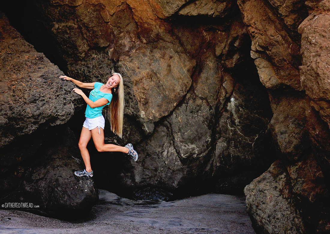 #Bahia Huevos_St Pattys DayWe planned to continue our journey north the next morning. That evening, we rowed to shore one last time to explore the beachfront cave at the southern bend of the bay and to stretch our legs along the sand.#Bahia Huevos_Cave JessieGettin’ crabby