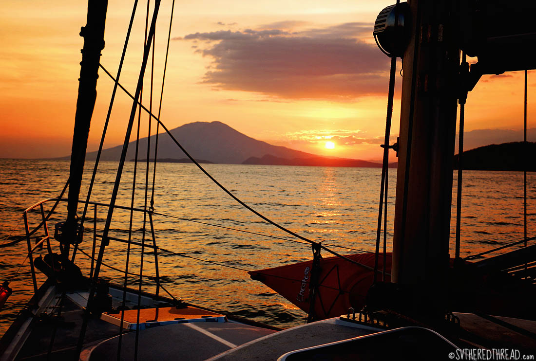 That evening, we watched a fury of colors fade along the horizon across the Golfo de Fonseca. As the sun sunk behind Volcan Conchagua on the El Salvadoran coast, we hoisted our Honduran courtesy flag.