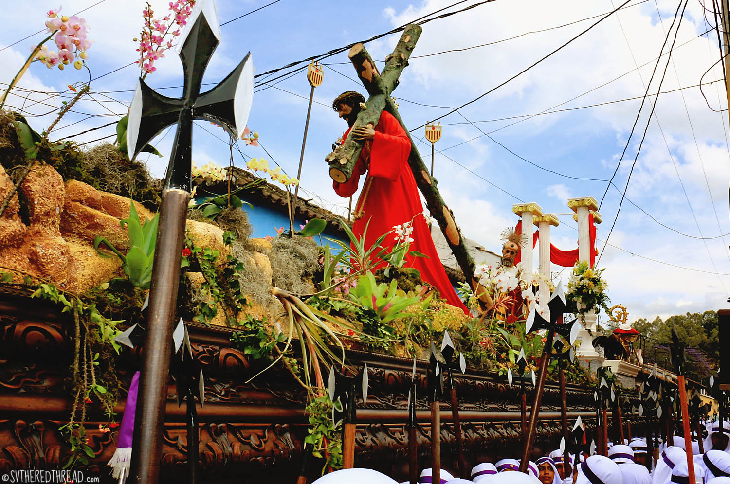 As the morning progressed, Christ’s tragic path to crucifixion was epitomized in grand statues and portraits that were displayed on pedestals and colossal floats and hoisted on the shoulders of penitents. Some floats reportedly weighed as much as 7,000 pounds and were so enormous that over one hundred men were required to move them. We counted. Lengthy poles gingerly lifted telephone wires that were erected centuries after this tradition became a steadfast feature of life in Antigua, allowing the floats to pass beneath them.