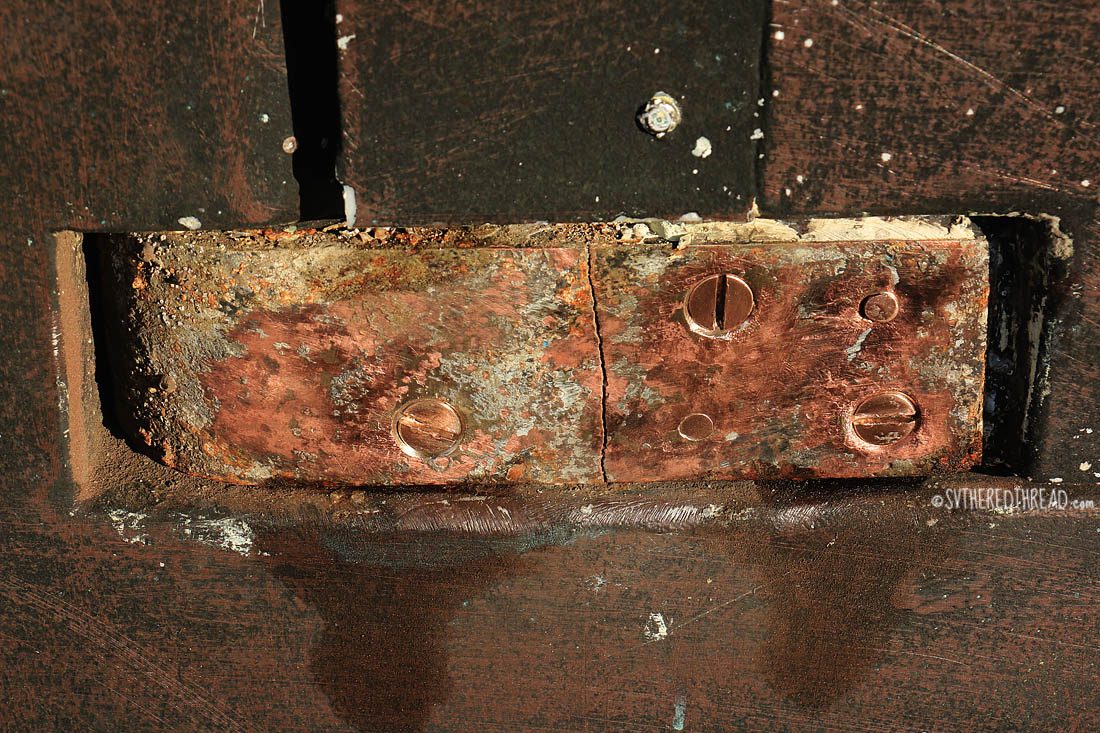 After three solid years in saltwater and a long year of hard sailing ahead, it was time to add new antifoulant paint to The Red Thread’s undercarriage. We were extremely impressed by the condition of our old paint (i.e., Seahawk Tropikote, as was the marina staff) and were glad we opted to have the same paint shipped in for the new coats. - Replace the rudder gudgeon bearing: Toward the end of last season, we noticed what appeared to be a hairline crack in our rudder gudgeon bearing. Catalina Morgan 440s have had issues with this in the past, but we are not her first owners and had long missed a recall window to have the old gudgeon bearing replaced with a stainless steel version free of charge. Although we couldn’t be certain of the severity of the crack, we knew it would be easier to obtain a new one while in the States than to try to finagle shipping one in or having one machined in Costa Rica. As it turned out the bearing was broken completely in half, and we were extremely relieved to have brought one with us!