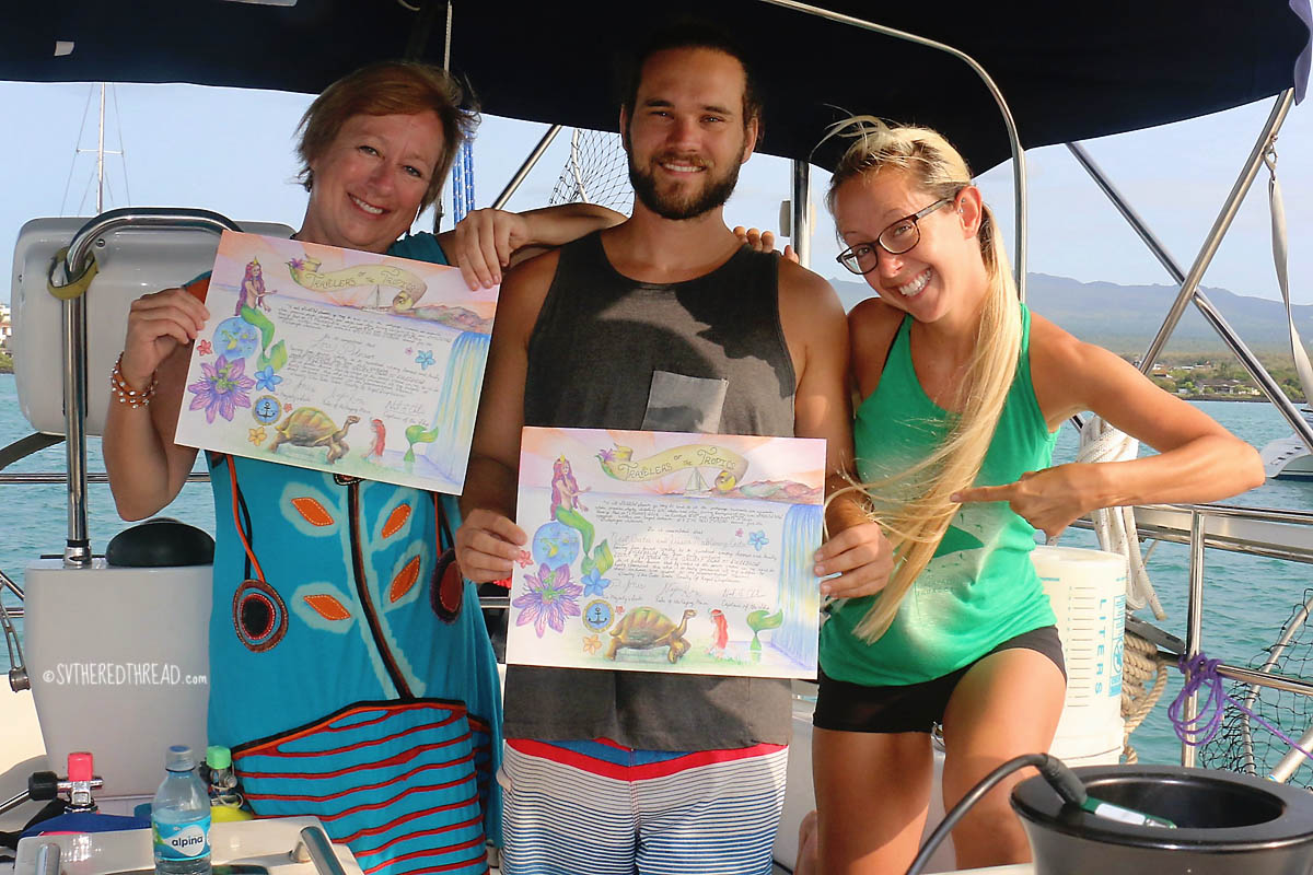 Not traditional, but hilarious! To commemorate our accomplishment, I surprised Neil and Lori with beautiful one-of-a-kind certificates that were hand-painted by my young artist friend, Rachel Morin. Lastly, to cap off the festivities, a pod of orcas spouted in the distance in the midst of the fun.