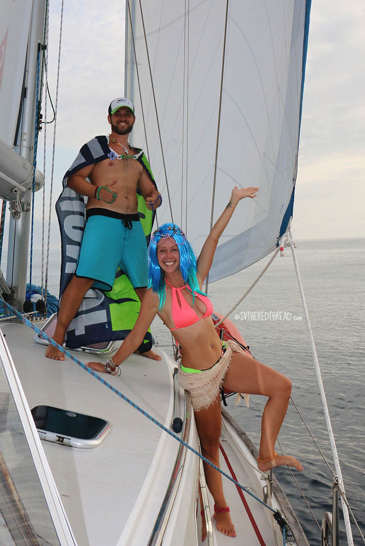 Jessie’s musings: The extremes of emotion I experienced during the passage are etched most deeply in my memory. I was overcome with a guttural ache as we left the continent in our wake; not a feeling of sadness but, rather, sentimentality, as we raced from mainland Panama. The second was the extreme sense of elation I experienced as we celebrated our equator crossing. I love few things more than a good theme party, and I’d been thinking about the merriment to be had since long before we left Seattle! Watching our latitude click from N to S was truly an accomplishment worth celebrating! Sharing those moments in the middle of the blue with Neil, Lori, and a pod of orcas in the distance—all bits of the Pacific Northwest—made me feel a world away and, simultaneously, completely at home!