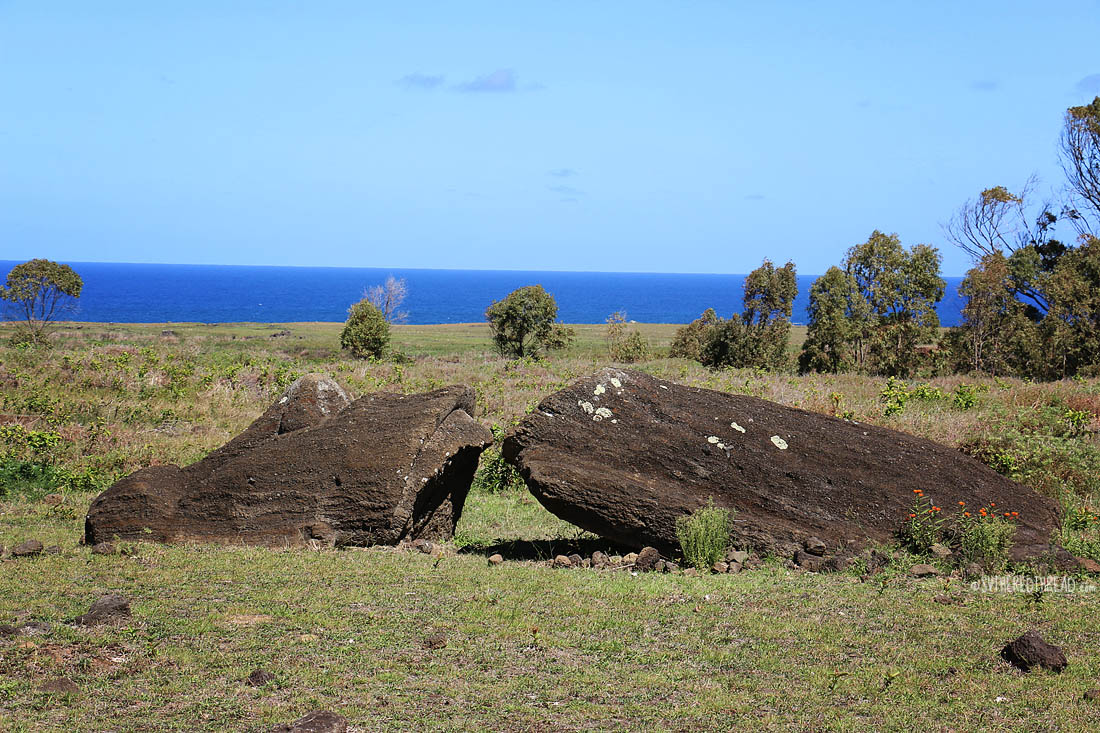 With the midday sun hot overhead, rapa-nui_rano-raraku_neilwe parked the car at Rano Raraku. The idea that nearly 900 moai were born in the quarry by the hands of Rapa Nui laborers is an immense thought to consider; to see the quarry in the flesh is nothing short of grand. Roughly 400 moai remain entombed at Rano Raraku. Over 100 are completely carved but partially buried, a discovery made in the 1950s that continues to mystify people around the globe. We know when moai were nearly complete, they were transported by aliens or log sleds or magic (depending on your theory of choice) to an ahu, where their eyes were carved in greater detail and coral and obsidian were placed in the sockets. This is why the moai in the quarry appear to have sharper facial features than those who rest upon ahu. We will never know if the completed moai that remain interred at Rano Raraku were intended to remain at their birthplace indefinitely or if were they awaiting transportation to a final resting place. Hundreds of moai were abandoned in various stages of completion for reasons that will never be understood.rapa-nui_rano-raraku_pathsrapa-nui_ranu-raraku_moai1 rapa-nui_rano-raraku_fallenrapa-nui_tongariki2_1Rapa Nui was ecologically decimated through deforestation and the burden of an increasing population likely threw the island into a state of catstrophic imbalance. Was the exploitation so severe that the work of finishing and moving the moai was impossible? Did war, disease, or starvation cause the work to come to a halt? Is the abandonment an attestation of an abrupt shift from ancestor worship to another paradigm? We will never know…