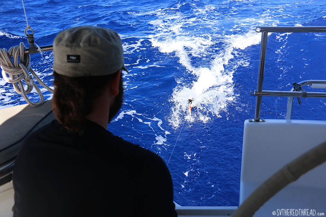 Winds were between 16 and 22 knots for the next 24 hours…we rode the trade winds promised in the tales that seafarers tell. And King Neptune sent us a skipjack tuna.