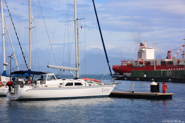 It felt like a bit of a miracle that just days before we made landfall on Tahiti, so, too, did our new AGM batteries. Glory hallelujah! Our joy was tempered by the daunting process of removing our old batteries and replacing the new ones. Thanks to the team at Nautisport, the batteries were delivered to the marina, but the task of swapping them loomed. Red Thread has 3 45-amp hour AGM batteries, each of which weigh roughly 70 kilos. Richard from s/v Sarita kindly offered to help Neil with the job, which ended up requiring about 10 hours and a massive rewiring to make some changes to the configuration. They also installed a new Xantrex battery monitor. When we first met him, Red Thread’s prior captain, Glenn Maddox, told us that long-distance cruising is “all about managing power.” He was right, and for the first time in months, we could finally rest easy knowing that we’d no longer have to rely on our Honda 2000i as a lifeline to keep our key systems operational.