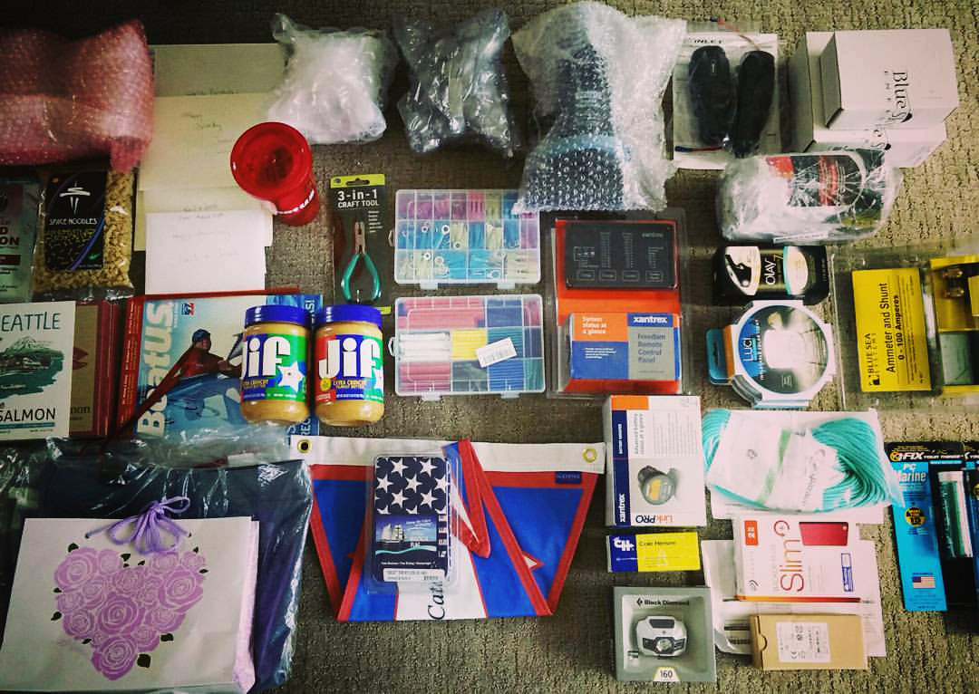 If you come to crew aboard s/v The Red Thread, you must bring your “boarding pass.” That is, one checked bag chockablock full of boat parts that we will ship to your door. The lion’s share of their luggage was ours. Mark and Helen brought a couple pairs of shorts and bikinis, some cotton bits, and a bottle of rum and a box of wine (okay, I confess, my descriptions of those quantities may have been a bit modest…alcohol is expensive here, so it made the “wish list”). The rest of was ours. Literally. In their gallantly packed bags were a pile of electrical bits, a new Xantrex solar regulator, a new macerator pump (to repair the head [aka toilet]), oars for the dinghy, a new American flag, some hard drives, pasta shaped like the space needle, a new head lamp, paracord, couple tubs of peanut butter, and a litany of other boat parts and bobbles.