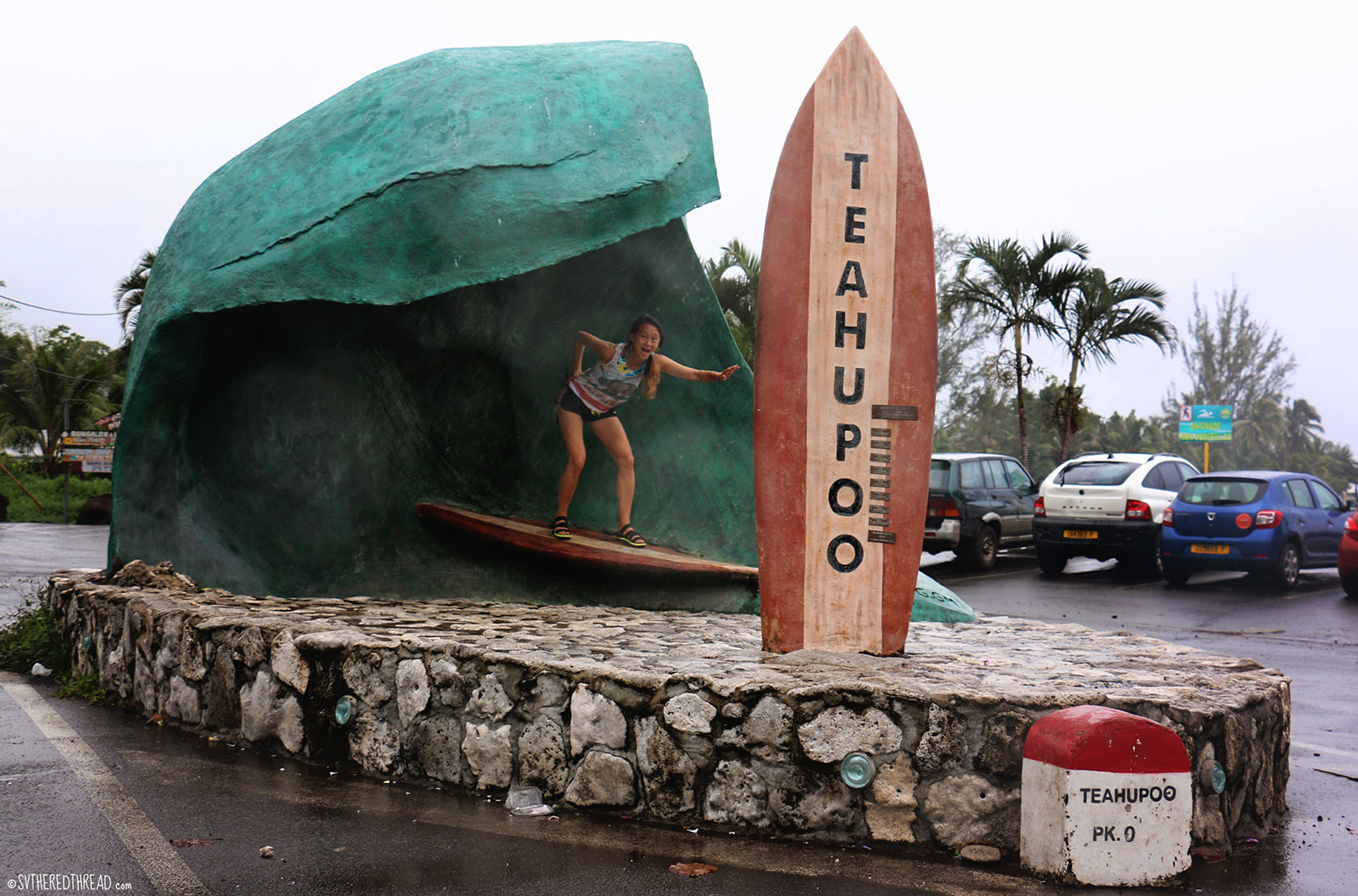 The day we drove around the island, we were teased by rain most of the afternoon—drops tickling our skin with surprising chill—but the vistas were lovely. We stopped at Belvédère de Taravao, hoping to catch a glimpse of the grandeur of Mont Orohena. Alas, she was shrouded in fog that is characteristic of the climate that maintains the mountainous island’s beauty. Perhaps she shall show herself during a future visit…?