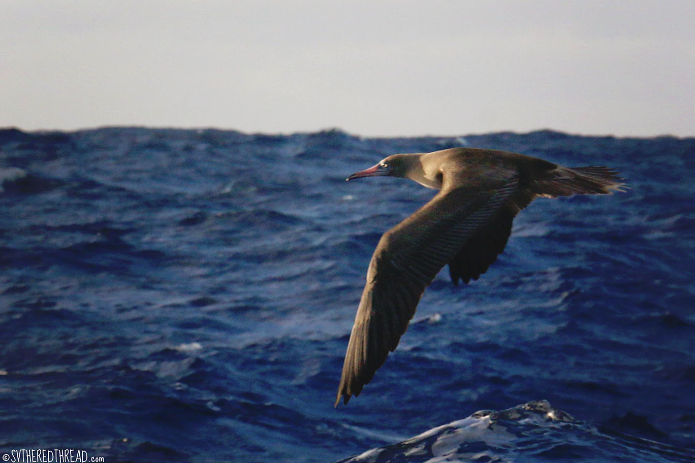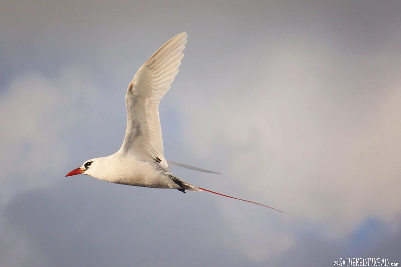 We got back underway at 4:15 am. Dawn broke a few hours later with two tiny islands peeking barely above the surface of the sea, and a red-tailed tropic bird pirouetting around Red Thread. We were on the verge of exploring our very first coral ring!