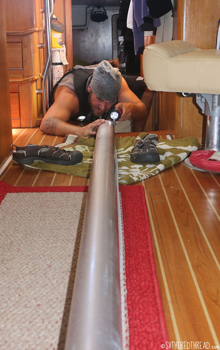 We hauled the pole down below, but despite Neil’s best efforts to troubleshoot underway, we decided it would be best addressed after we made landfall and the boat was stationary. The pole itself was fine, it just couldn’t extend, which would restrict how much sail area we could carry when we were using it to pole-out the jib.