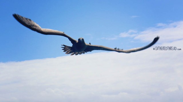 Dolphins accompanied us as we made our way though the reef pass and shifted our course to sail for Niue, an omen for a good passage ahead. We galloped along at 6.5 knots, Red Thread’s mane dancing in the southeasterly tradewinds. Several days at sea stretched ahead of us, and Suwarrow’s seabirds circled around us.