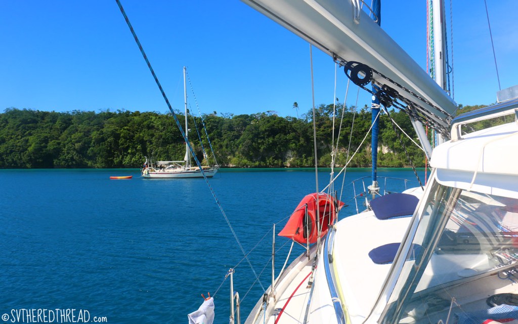 They were hesitant, as s/v Romano, a Najad 441, drafts 6 feet, whereas Red Thread only drafts 5 feet 2 inches. It may not seem like much, but even a few inches can make a world of difference when navigating shallow areas, which would be necessary to reach Kenutu. Few destinations are worth the risk of running aground, especially when cruising in a remote area where support services are limited or nonexistent. We promised to navigate ahead of s/v Romano, sounding out the depths and keeping in contact over VHF to assure their safe passage.